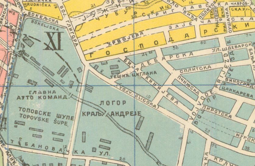На плану из 1940 се код Ауто-Команде, Топовских шупа и Логора краљевића Андреја види обележена "Тешићева циглана".