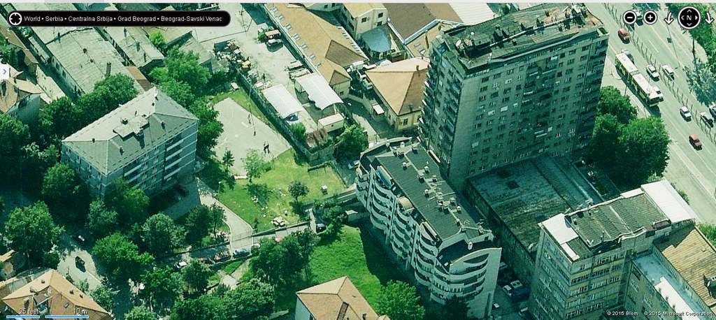 Ovde se u kadru, levo, vidi jedna četvorospratnica u Bloku 70, pa po meni ovaj neidentifikovani građevinski objekat stoji u okolini tržnog centra u Bloku 70A http://binged.it/1SSVzoL