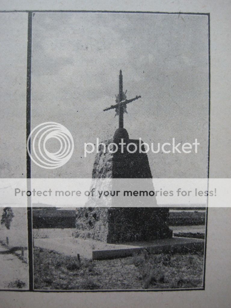 Ovo je zaista intresantno. Još jedan spomenik podignut verovatno prvih godina po oslobođenju. Deluje istovetno kao i ovaj „današnji”, s tim što mu se ne vidi zatvarač u podnožju krsta, tj. cevi topa. Moguće da je uzidan. Ni lovorov (limeni) venac nije isti jer se na ovom na slici nalaze, rekao bih mačevi, poput onih na ordenju, dok kod ovog današnjeg toga nema. Ipak, obe različitosti nisu dovoljne da opovrgnu Uličarevu tezu da je to jedan te isti krst, jer se venac lako da zameniti a zatvarač cevi „izvući” iz postamenta kako bi i on bio vidljiv detalj.