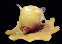 ХОБОТНИЦА ДАМБОНеобична и помало смешна хоботница са перајима која подсећају на слонове уши, по којима је и добила име, живи на дну океана. Мекушца Grimpoteuthis, познатијег као Џамбо Дамбо, открила је група научника, док је бележила облике живота с океанских дубина. Звезда овог научног подухвата дугачка је два метра и тешка шест килограма.
