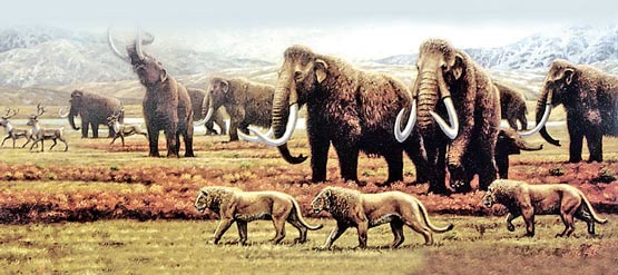 Током последњег периода глацијације (стварање ледника), између плеистоцена и холоцена (пре 18 000 и 6 000 година), десиле су се велике климатске промене које су довеле до изумирања 34 животињске врсте, попут мамута и сабљастог тигра. Све до данас научници су тврдили да је нестанак праисторијских животиња последица климатских промена које су уништиле животну средину, али и претераног лова. Наиме, познато је да је Хомо еректус користио месо мамута у исхрани. Међутим, најновија научна открића указују да су џинови прошлости нестали пре 14 800 и 13 700 година, много пре појављивања Кловис Индијанаца, највећих ловаца Северне Америке у праисторији и једног од најстаријих палеоиндијанских култура.