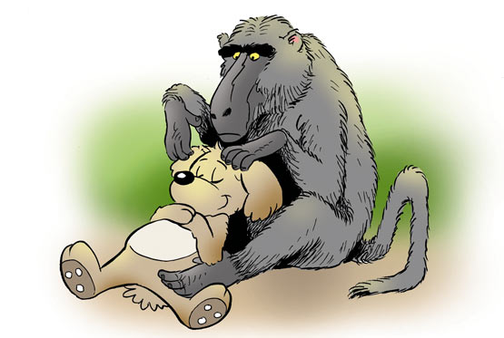 Људи су доскора били једина позната врста која удомљава друге животиње и чува их као љубимце. А онда је примећена група павијана који киднапују штенце уличних паса. Планирано „нападају, одвајају их од мајке и уводе их у свој чопор. Испрва се на овај поступак гледало као на сурову животињску забаву. Међутим, киднаповани младунац израстао је у зрелог пса и постао део павијанског чопора. Када је једном скренута пажња на овакво, људско, понашање ових мајмуна научници и заљубљеници у животиње имали су шта да виде: украдене штенце павијани су хранили, чистили, штитили, водили свуда са собом и васпитали на свој начин, као праве љубимце.