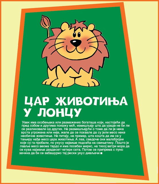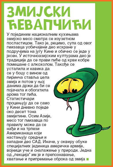 КРОКОДИЛСКЕ ГУЗЕНеко би се, можда, згадио, али не и људи који су у одређеним пределима Аустралије, Тајланда, Јужне Африке, Индонезије, Етиопије. Они су навикли да им се на јеловнику нађе и месо крокодила. У посебним радњама Европе и Америке може да се купи месо тог гмизавца. Пошто, кад се говори о укусу неког меса, мора да се прави поређење с оним на које је већина људи навикла, укус меса крокодила личи на пилетину или крабу. Ако може да се бира, свако ће се определити за реп или леђни део великог гмизавца.